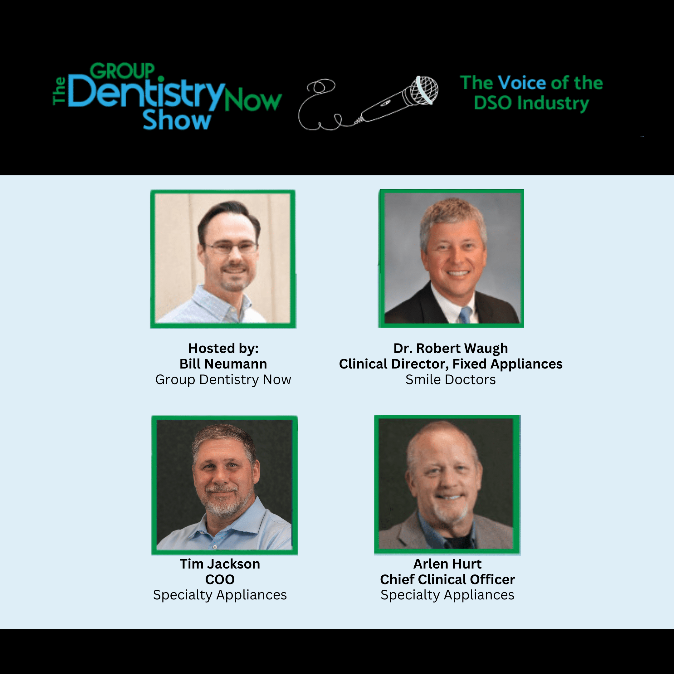 Dr. Bob Waugh, Clinical Director, Fixed Appliances of Smile Doctors, Arlen Hurt, Chief Clinical Officer of Specialty Appliances & Tim Jackson, COO of Specialty Appliances join the show. The trio discuss: